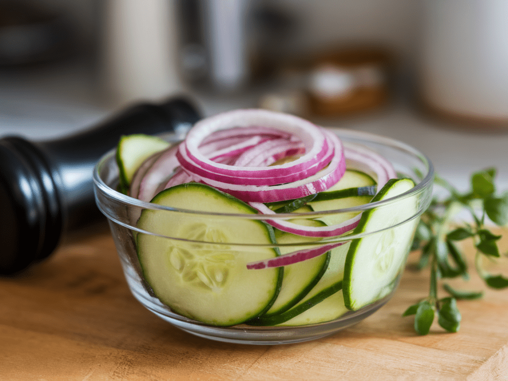 Ah, the cucumber onion salad — simple, old-school, and ridiculously satisfying.