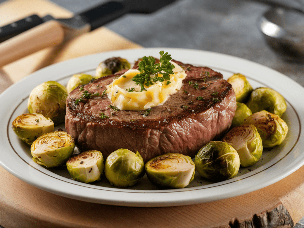 🥩 4. Garlic Butter Steak with Roasted Brussels Sprouts