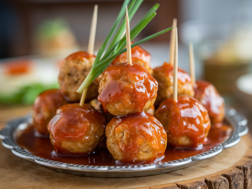 4. Honey Sriracha Cocktail Meatballs – Sweet, Spicy, and Crowd-Friendly
