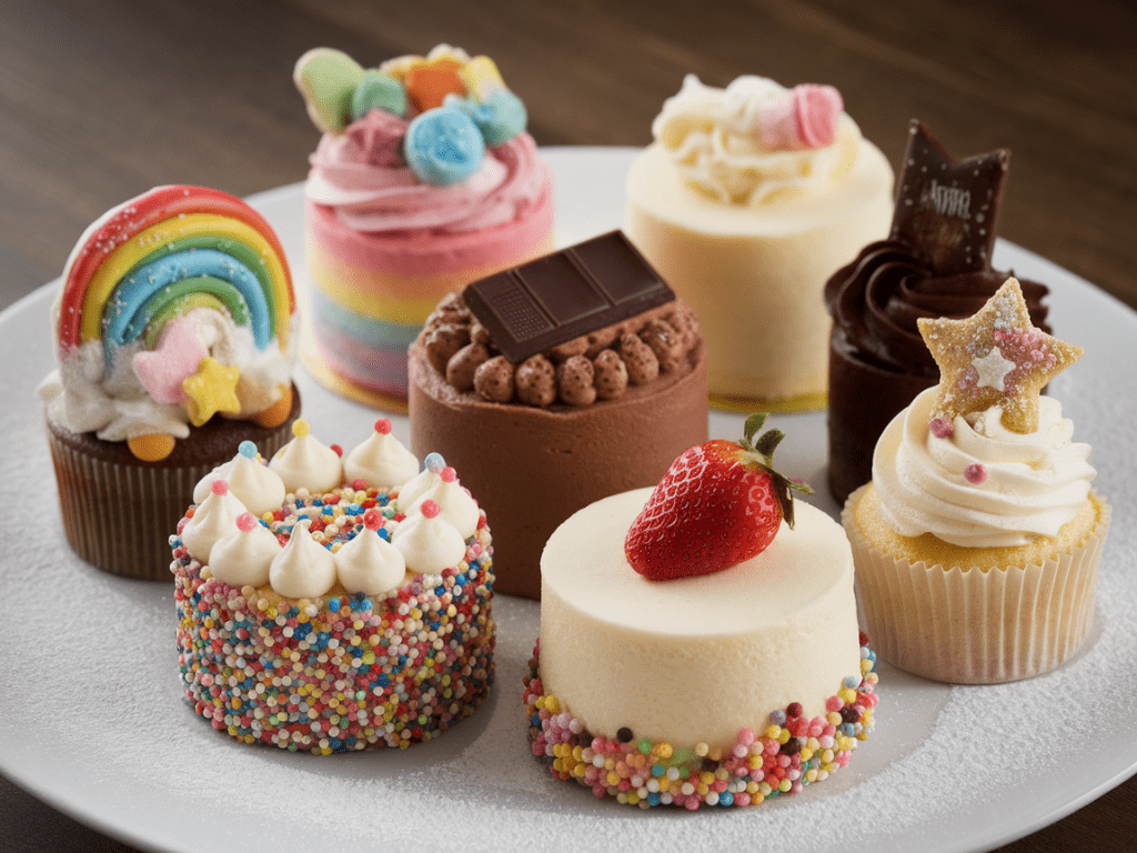 - Rainbow cakes: Stack mini cakes with different colored layers inside for a surprise cut.