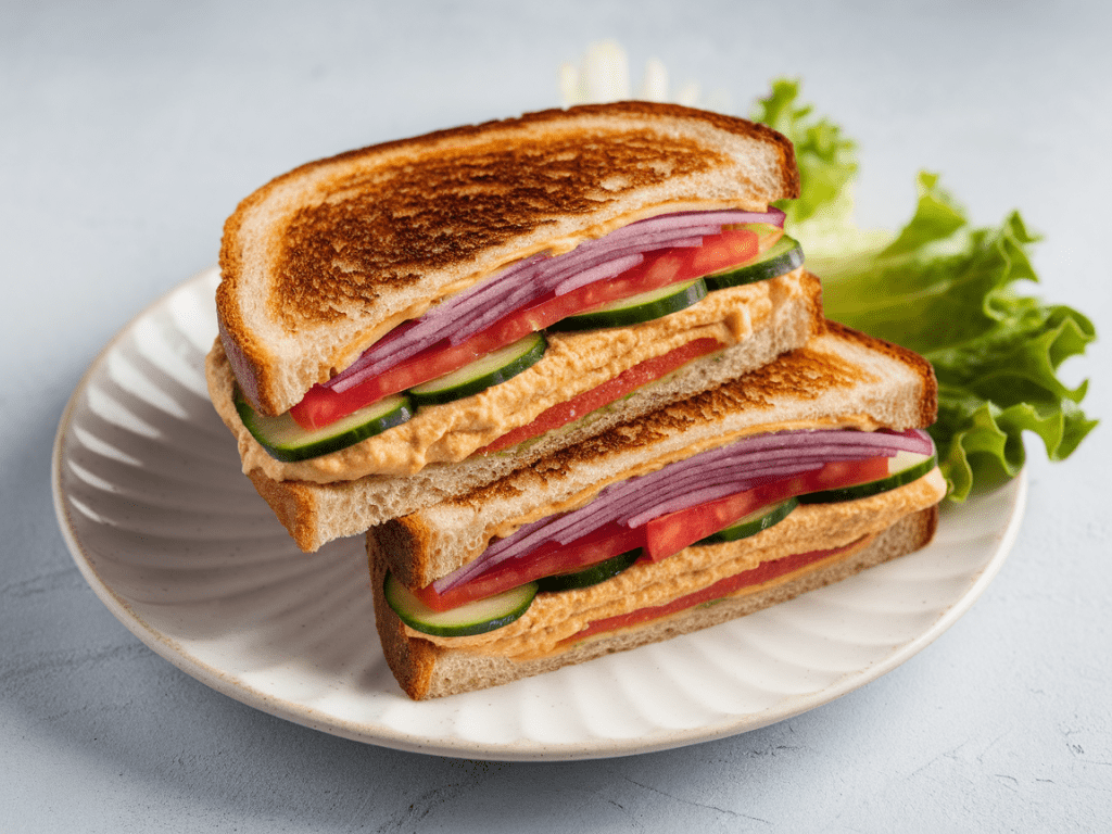 Spread hummus generously, then add cucumbers, spinach, peppers, and whatever crunchy goodness you have around.