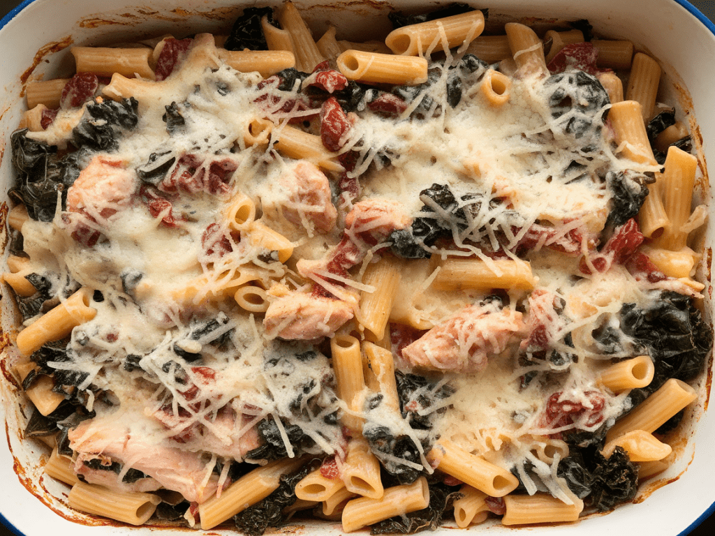 This dish has everything: tender chicken, al dente pasta, sun-dried tomatoes, garlic, spinach, and of course… that glorious creamy, cheesy sauce that makes everyone reach for seconds. And don’t worry if you’re new to “casserole life”—I’ll walk you through it like we’re in the kitchen together, wine glass optional but highly recommended.