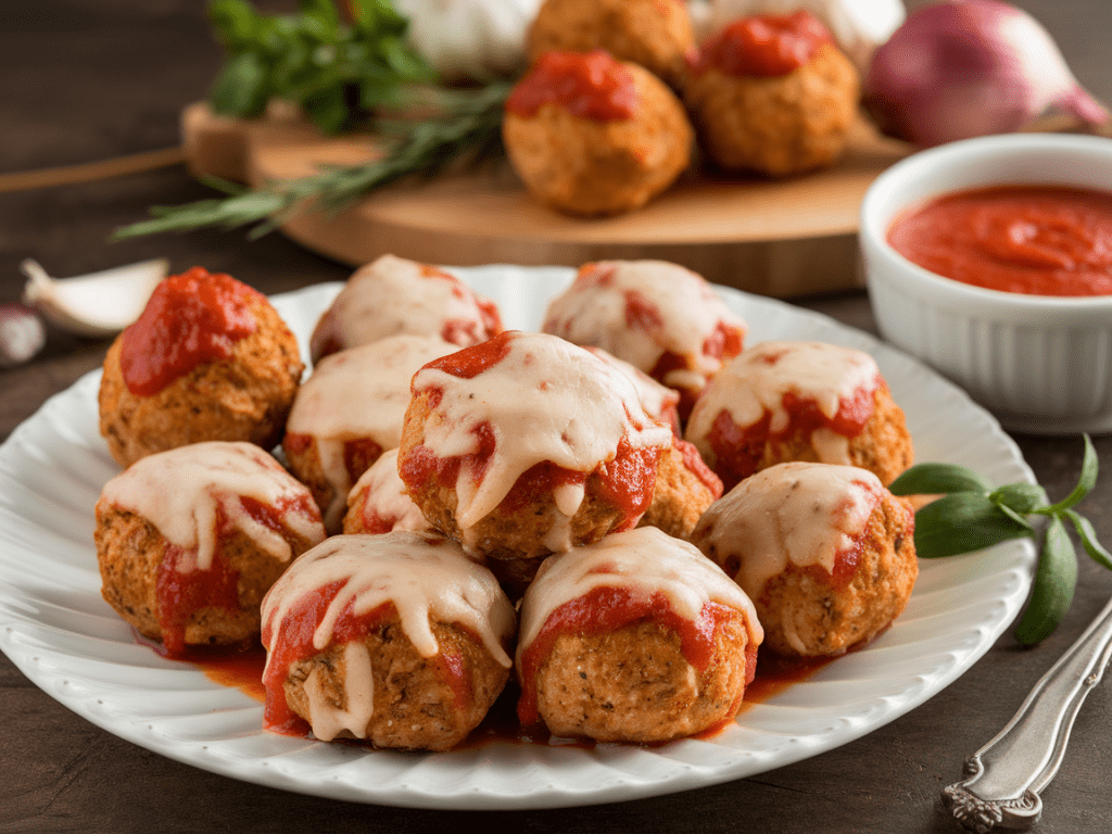 Chicken Parmesan meatballs are juicy, cheesy, and delightfully easy. They turn any weeknight into a little celebration without extra stress. Whether you serve them over pasta, with garlic bread, or alongside roasted veggies, they hit all the right notes: comfort, flavor, and a touch of elegance.