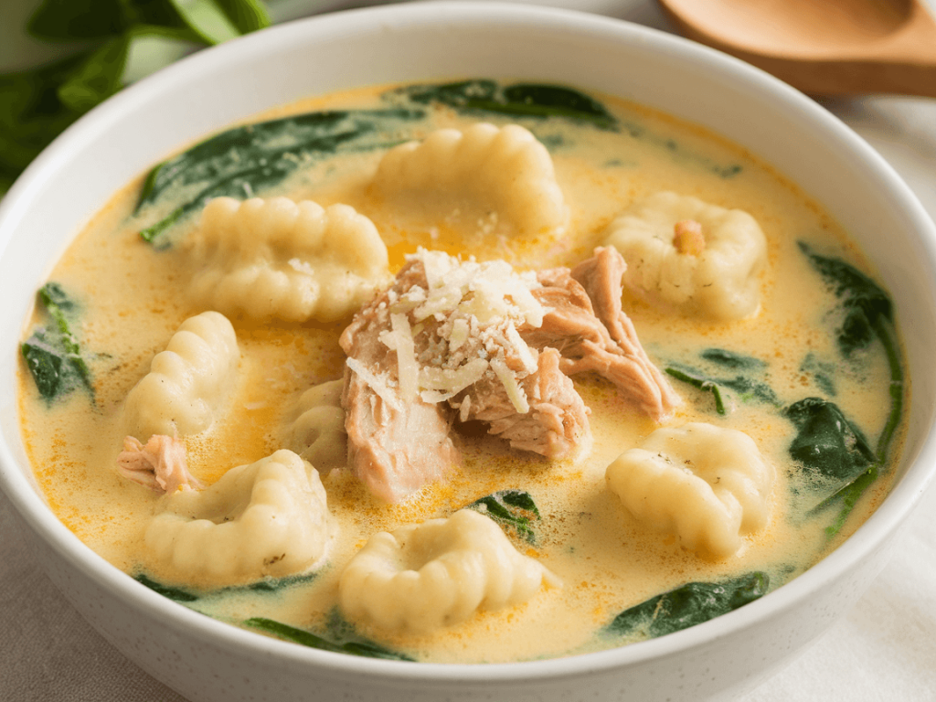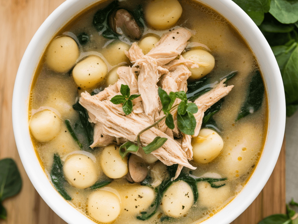Chicken + gnocchi + vegetables = a balanced meal in a single bowl. Spinach, carrots, and celery boost nutrition, while chicken keeps you full and satisfied. Ever feel like soup alone isn’t enough for dinner? Problem solved.