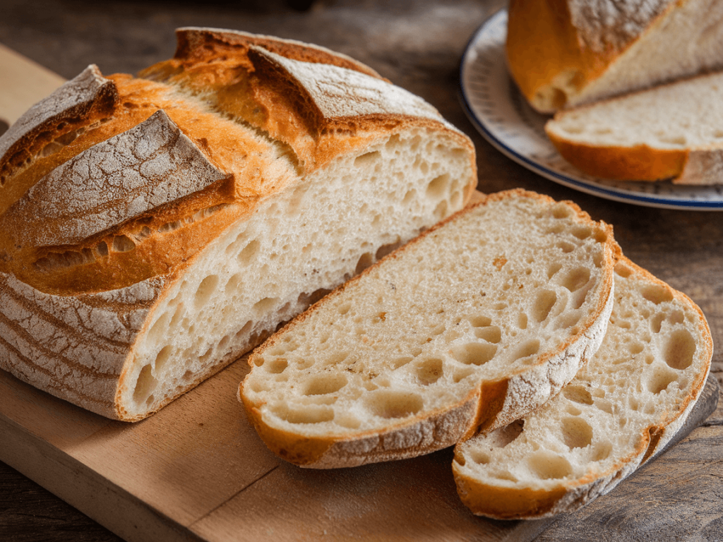 - High hydration creates a light, airy crumb.