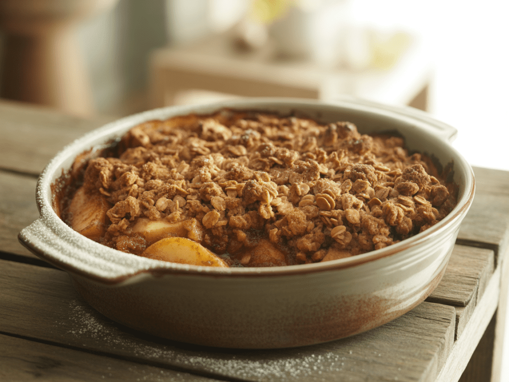 - Sprinkle topping over apples and bake 25–30 minutes.