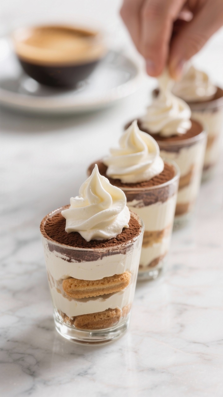 Use a piping bag (or zip-top bag with the corner cut off) for the cream layer, and break ladyfingers to fit snugly. Wipe the inside edges of cups before chilling for clean lines.