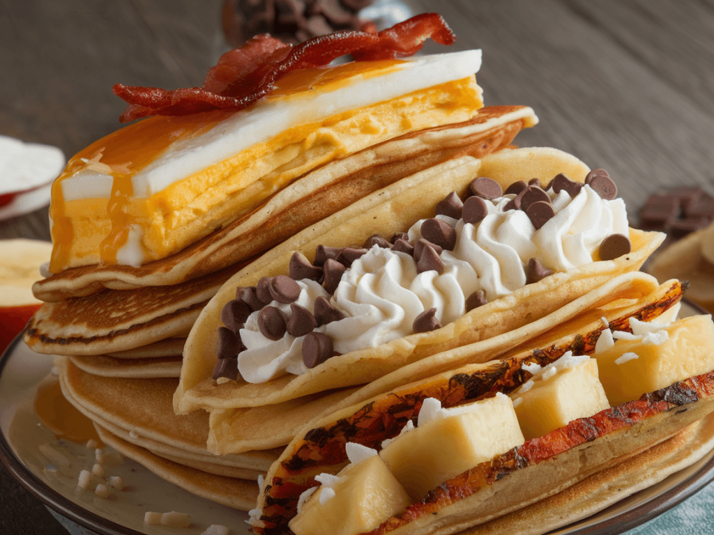 Pancake tacos use soft pancakes as taco shells, then fill them with sweet or savory goodness. Think handheld pancakes that don’t require a fork or commitment. They feel playful, practical, and surprisingly genius.