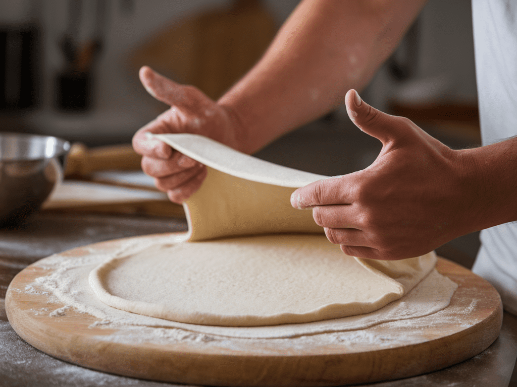 Here’s where a lot of beginners panic—stretching the dough. Don’t worry, it’s easier than it looks.